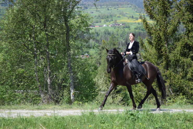 Beim letzten Unterricht bei Berni haben wir die Zonenisolationen angeschaut. Dabei geht es darum, dass man die Vor- und Hinterhand wenden kann, ohne dabei am Zügel Kontakt zu haben. Es geht darum, dem Pferd Verantwortung zu übergeben. Raven soll aufmerksam weichen, sobald mein Bein anliegt und darf anhalten, sobald der Druck weg ist. Diese Übung hilft mir und Raven mit der Genauigkeit und mit der Impulsion. Raven wollte am Anfang nur vorwärts laufen und war in der Bewegung kaum zu stoppen. Deshalb wollte ich ihm zuerst beibringen, entspannt stehen zu können und abzuwarten, bis eine Aufforderung zur Bewegung kommt.
